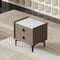 - Material: MDF, sponge, faux leather, rock slab + metal, solid wood drawer